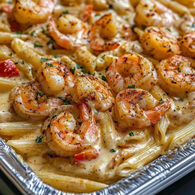 Cajun Shrimp Alfredo Pasta Bake — Creamy, Cheesy & Comforting 🍤🧀