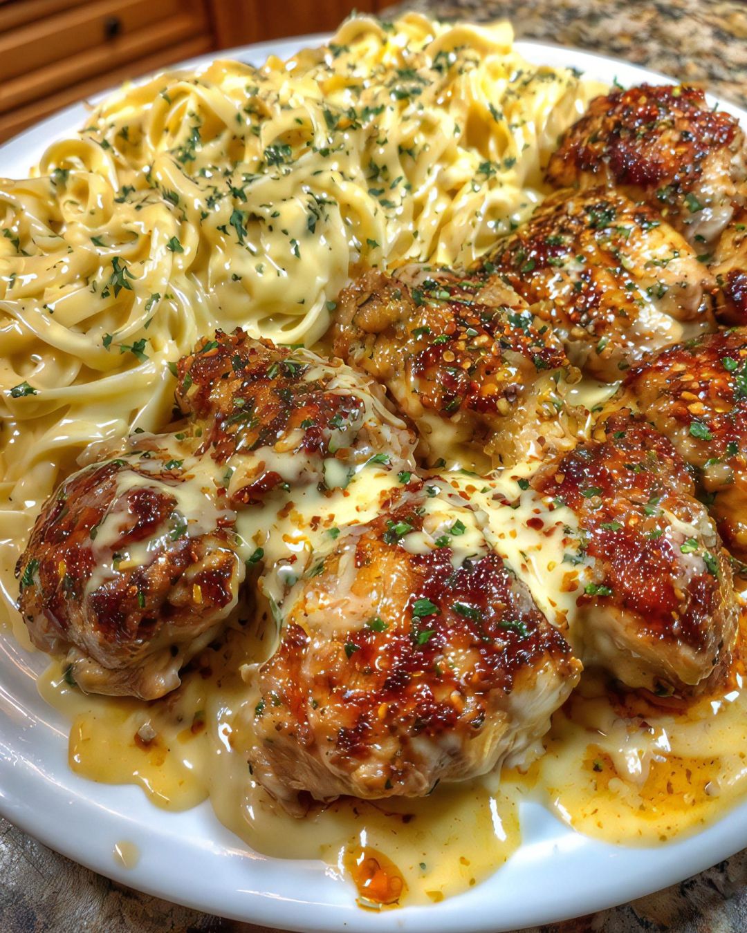 When you’re craving something cozy, rich, and satisfying, this Creamy Garlic Pasta topped with Juicy, Herb-Crusted Chicken is the perfect comfort dish to make at home. Tender chicken breasts are coated in aromatic herbs and seared until golden, then served over a bed of silky pasta tossed in a luscious garlic cream sauce. Every bite brings together buttery richness, savory herbs, and a hint of warmth from garlic. It’s the kind of meal that feels restaurant-worthy but is simple enough to prepare for a comforting family dinner.
