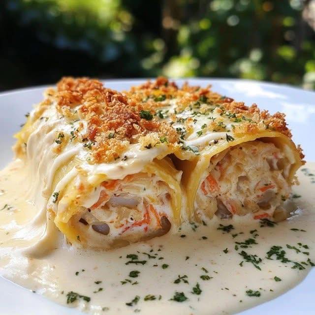 Fresh Crab Lasagna Roll-Ups with Creamy Parmesan Sauce 🦀🧀