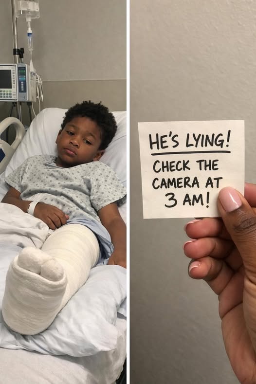 When our son broke his leg, my ex-husband swore it was just a freak accident. I wanted to believe him. But hours later, a charge nurse slipped a note into my hand that said, “He’s lying. Check the camera at 3 a.m.” When I slipped into the security room later, I uncovered a horrifying lie.