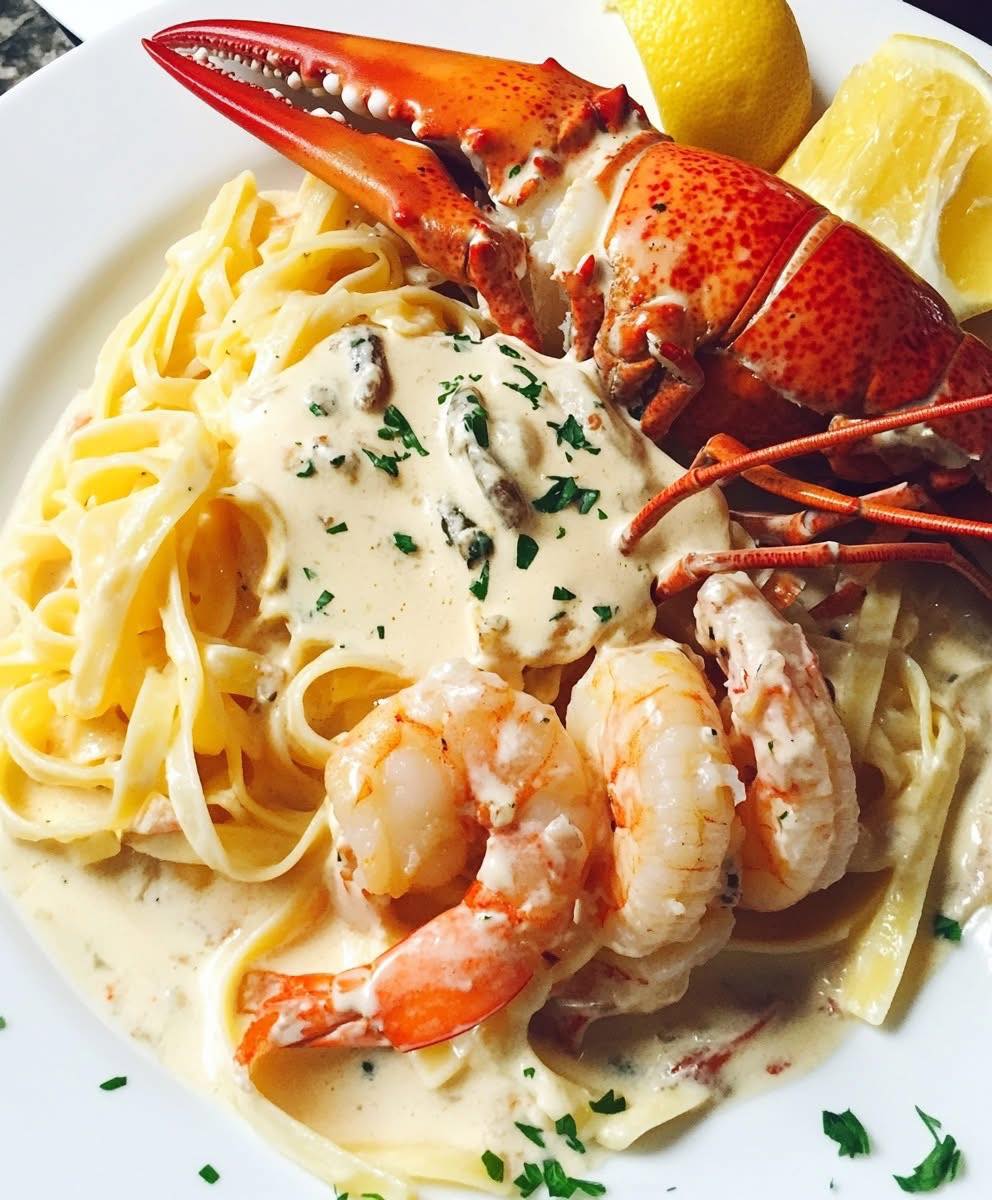 Treat yourself to a decadent seafood feast with this Lobster and Shrimp Fettuccine in Creamy Sauce. Succulent lobster meat and tender shrimp are tossed in silky, garlic-infused cream sauce and served over perfectly cooked fettuccine. Each bite delivers a luxurious combination of flavors—rich, buttery, and subtly briny from the seafood. Perfect for a special occasion, date night, or anytime you want a restaurant-quality seafood pasta at home, this dish is elegant, satisfying, and surprisingly simple to prepare.