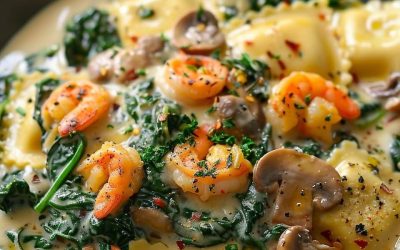 Ravioli with Seafood, Spinach & Mushrooms in Garlic Cream Sauce 🍴🦐🍄🌿 Introduction Indulge in this elegant and comforting pasta dish…
