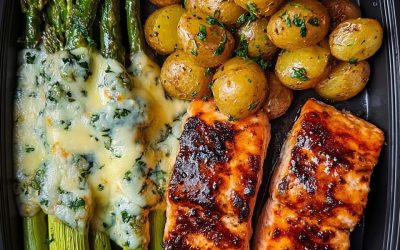 Glazed Salmon with Garlic Butter Potatoes & Cheesy Asparagus 🧀🐟 Introduction If you’re looking for a balanced dinner that feels…