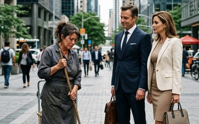 He smirked when he saw me sweeping outside his dream office tower. His fiancée laughed, called me pathetic, and he told me I didn’t belong there. What they didn’t know was that in thirty minutes, they would walk into a boardroom and learn the woman they mocked owned the entire building. By then, it was too late to take back a single word.