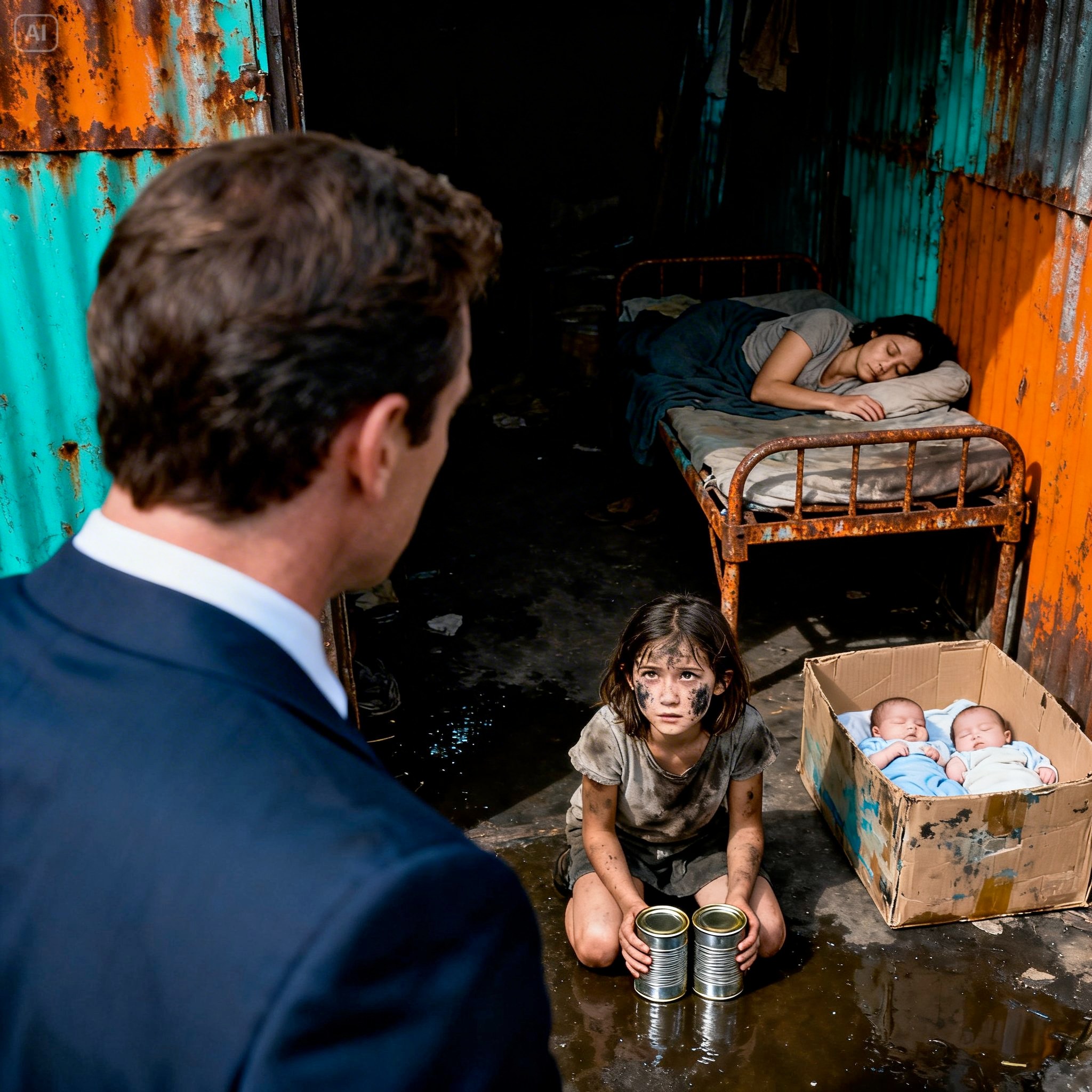 The trembling voice of the little girl, kneeling on the floor after taking two cans of milk, moved no one. On the contrary, she received only insults and jeers… they called her a thief. Only one man, from a distance, saw everything. He paid in silence… and then followed her without her noticing. When he arrived at the house… he froze upon seeing the woman lying on a dirty bed… she had…