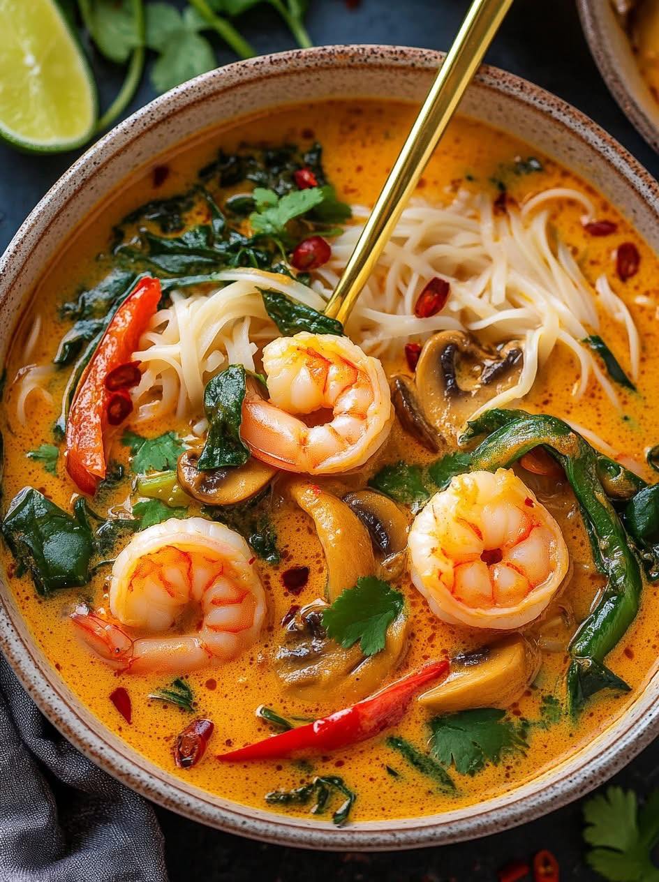 Warm, fragrant, and bursting with bold Thai flavors, this Thai Shrimp Soup is comfort in a bowl. Creamy coconut milk, tender shrimp, and a medley of fresh herbs and spices come together to create a vibrant, aromatic soup that’s ready in just 25 minutes. Perfect for a weeknight dinner, a cozy lunch, or when you crave something both light and satisfying, this soup is full of color, texture, and irresistible flavor.