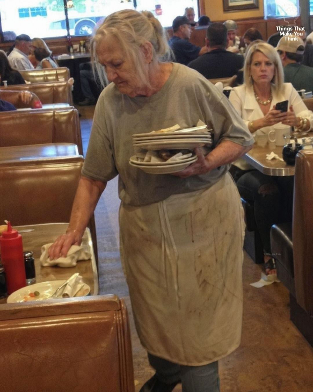 “Can management please do something about the elderly woman clearing tables?” the post read. “She looks literally homeless. Her clothes are faded, she shuffles around, and she takes forever to wipe down a booth. It’s completely ruining the aesthetic of a premium brunch spot.”