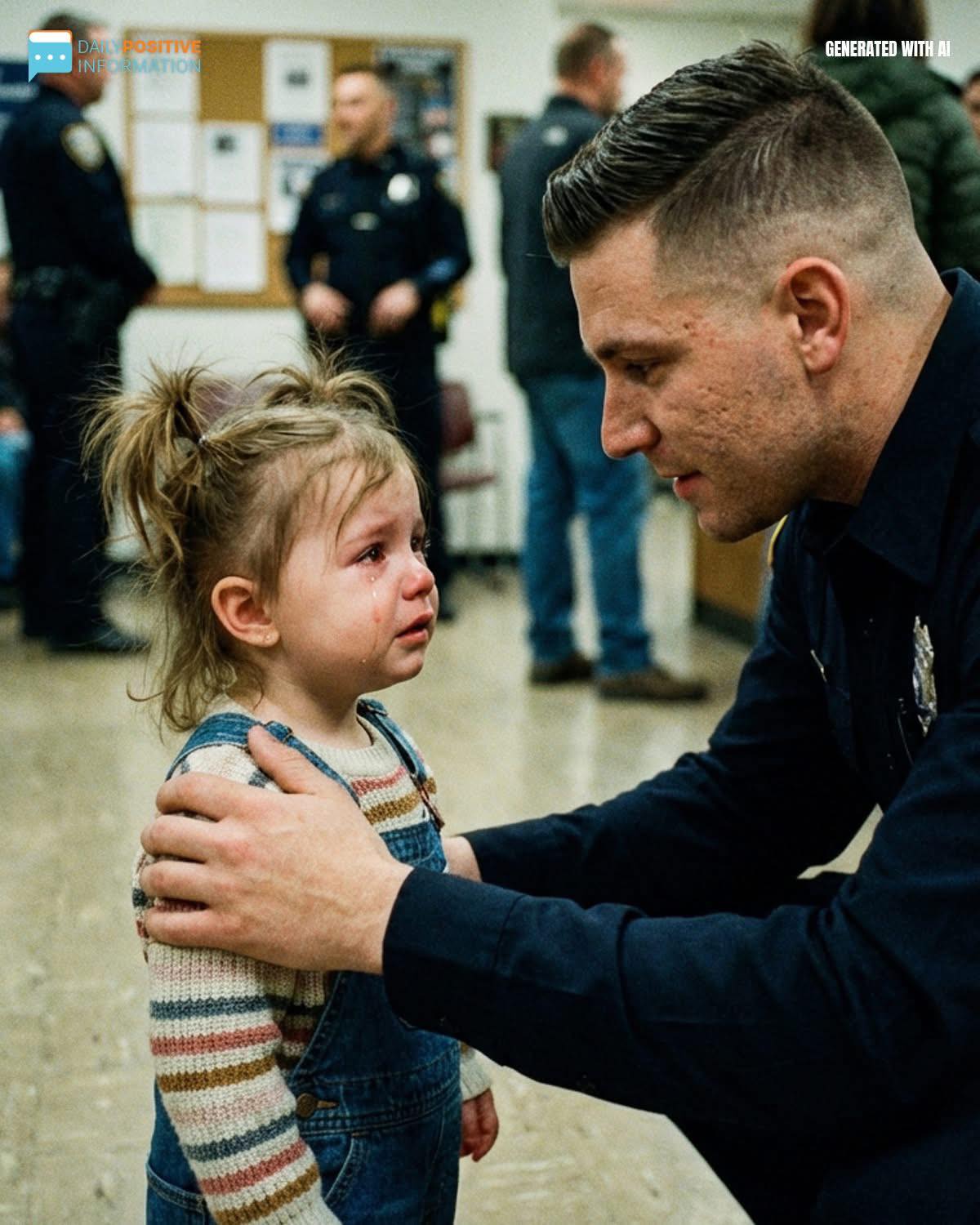 The little girl looked at him carefully, studying his uniform and badge, making sure he was “real.” Then, with a trembling voice and tear-filled eyes, she whispered something that sounded very serious to her: