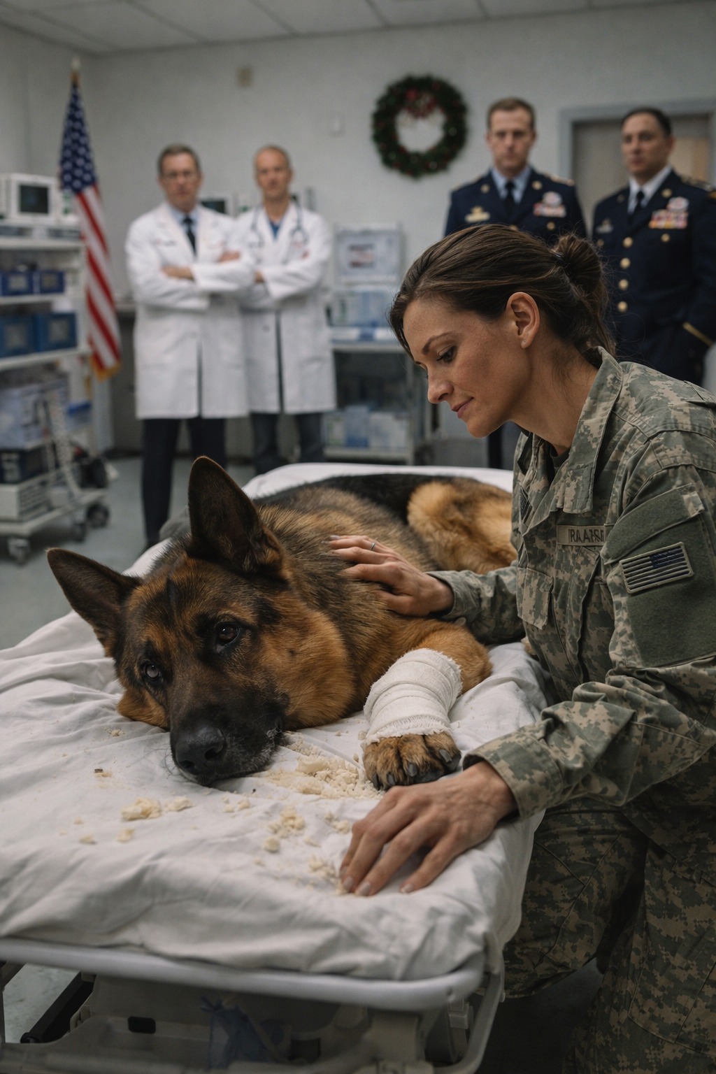 With her there, it was like a switch had been flipped. Titan allowed us to work. He flinched when we cleaned the deep gash on his flank, a long, ugly tear that spoke of shrapnel, but he didn’t snap. He let us put in the IV, his gaze never leaving the young corpsman who sat on the floor beside him, one hand resting gently on his head.